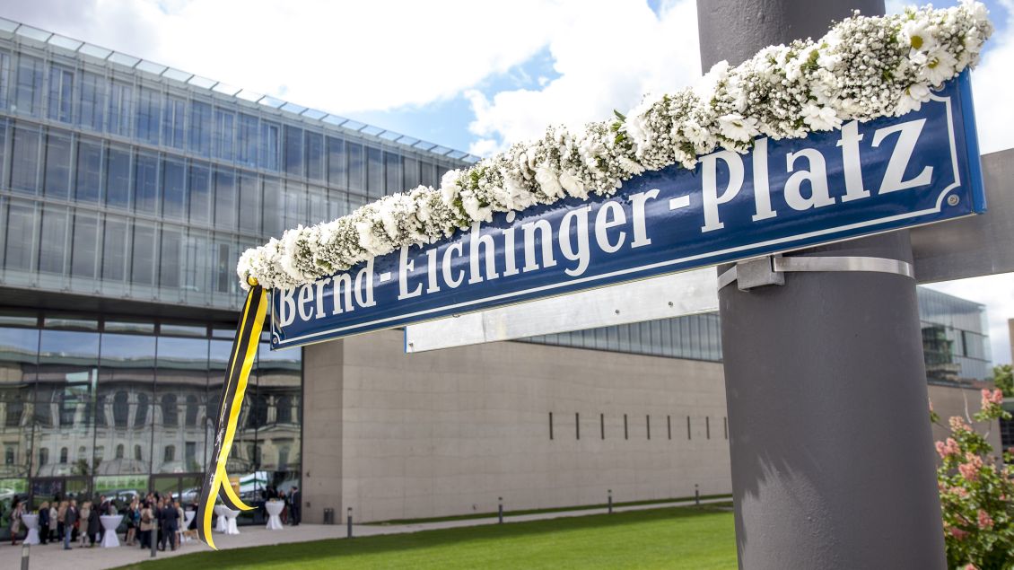 Als 2012 der Bernd-Eichinger-Platz eingeweiht wurde, enthüllte der damals amtierende Oberbürgermeister Christian Ude gemeinsam mit Eichingers Tochter Nina und seiner Witwe Katja Eichinger das Straßenschild. Zahlreiche Weggefährten Eichingers aus der HFF München sowie der Constantin Film waren anwesend.