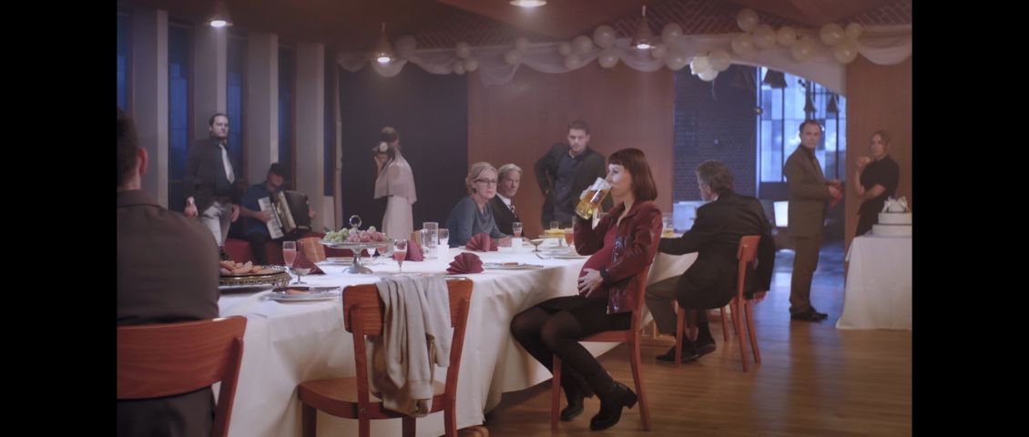Eine lethargische Hochzeitsfeier. Mehreren Gästen fällt auf, dass eine hochschwangere Frau Bier trinkt.